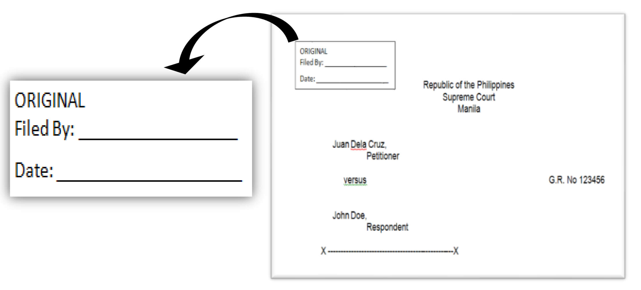 - Stamp mark on the upper left-hand portion of the 1st page of the ORIGINAL pleading and 1st page of every Annexes.
